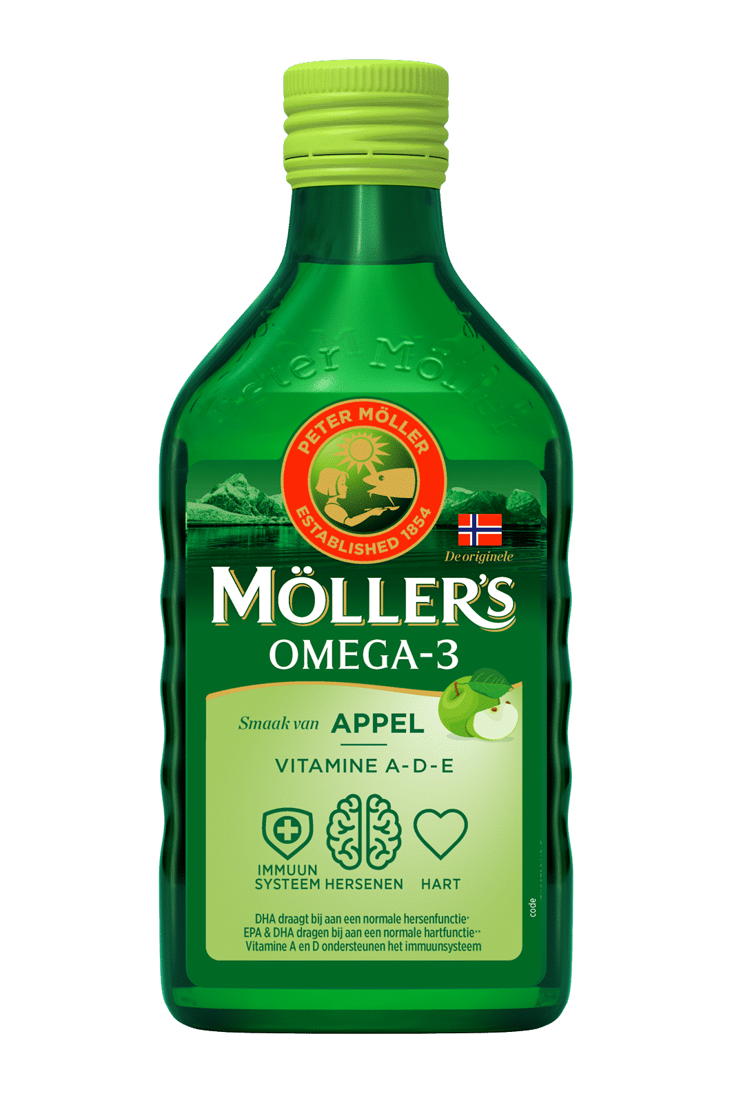 Möller’s Omega-3 Apple is pure Norwegian fish oil with natural apple taste. A unique combination of natural omega-3 (1.000 mg DHA and EPA per dessert spoon) and vitamins A, D and E.